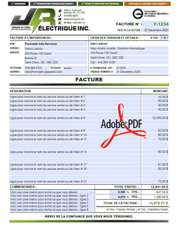 Toutes les instructions et ébauche(s) à approuver (exemple(s) à tester au format PDF dynamique et protégé(s) par filigrane avant paiement) vous seront envoyées par courriel au fur et à mesure suite à l’acceptation de notre soumission de prix et l'avancement des travaux de création et programmation.