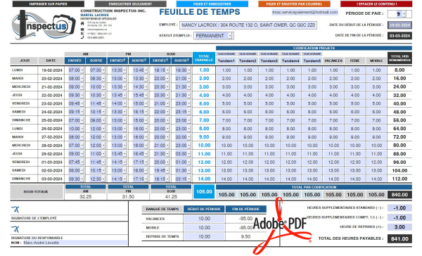 PDF | FEUILLE DE TEMPS | # P-M3CT23-4