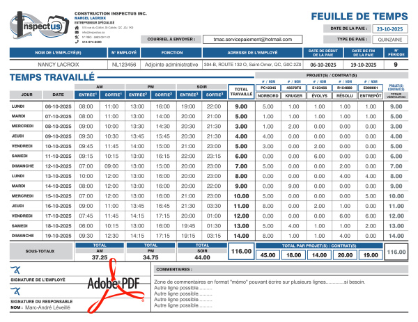 PDF | FEUILLE DE TEMPS | # P-P-M3CT31X-1
