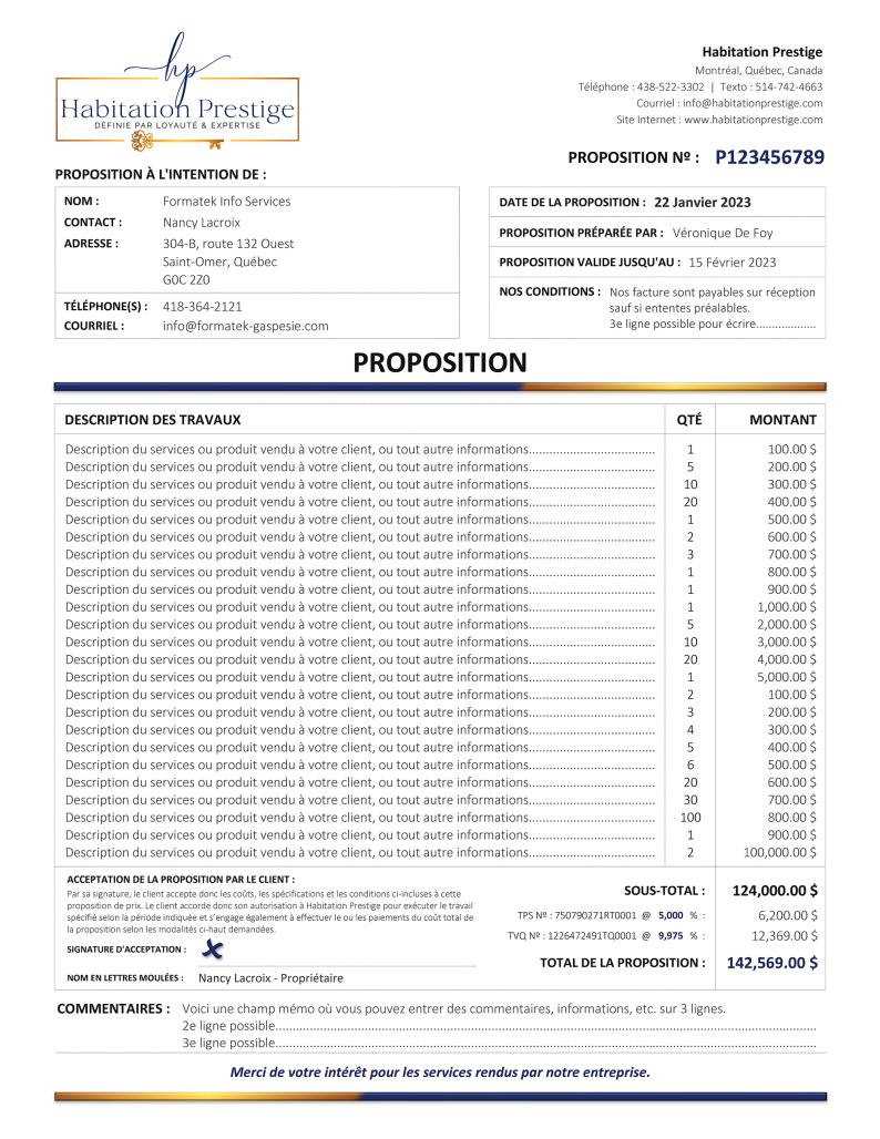 SOUMISSION / DEVIS / ESTIMATION |